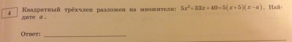 5x²+33x+49=5(x+5)(x+1,6), значит a=-1,6.