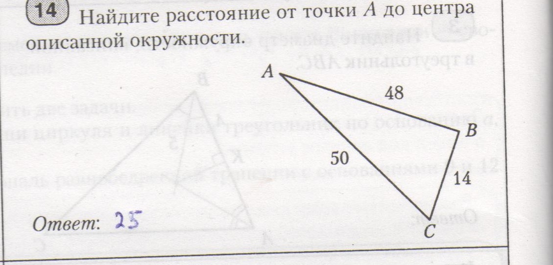 1) Отношение сторон в треугольнике (?:24:25) указывает на то, что треугольник прямоугольный, из Пифагоровых троек.