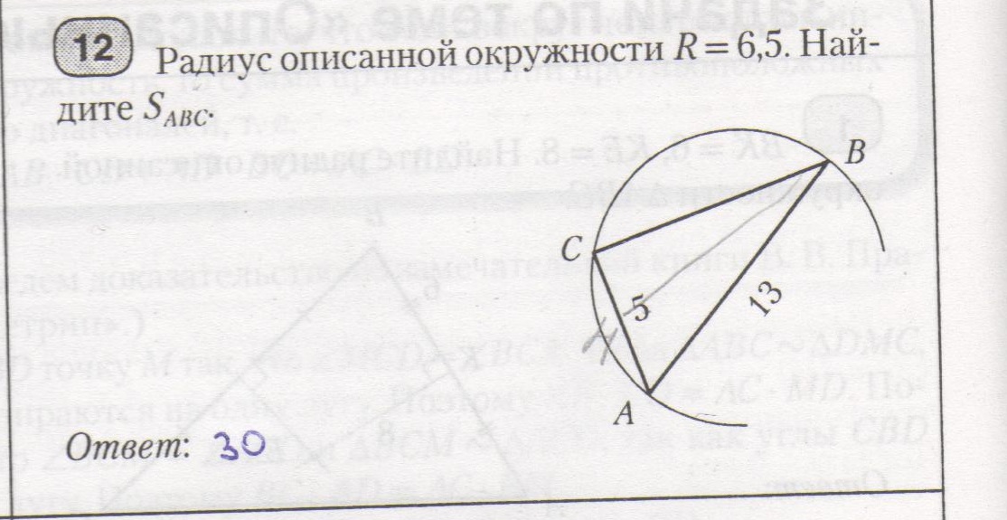 2) Т.к. радиус описанной вокруг треугольника окружности 6,5, то хорда АВ - диаметр, а угол С, опирающийся на эту хорду, - прямой.
