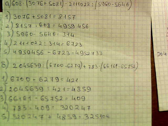 а) 608 • (3076 + 5081) - 2 111 022 : (5960 - 5646);