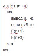 Чему равна сумма всех целых чисел, напечатанных на экране при выполнении вызова F(1)