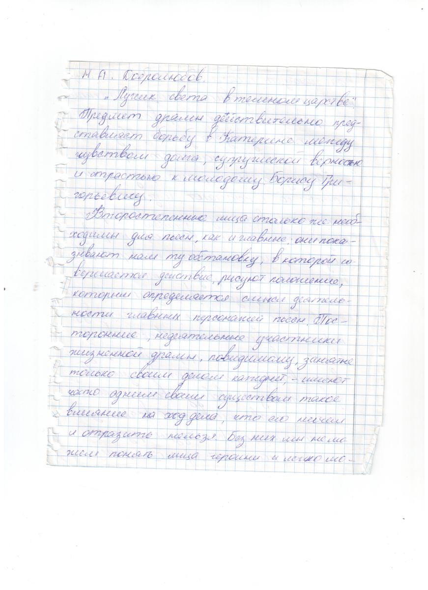 помогите пожалуйста составить конспект статьи Н.А.Добролюбова "Луч света в темном царстве" (по пьесе А.Н.Островского "гроза")