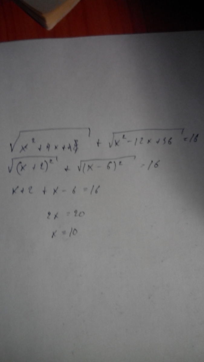 корень (х^2+4x+4)= корень (х+2)^2 =x+2