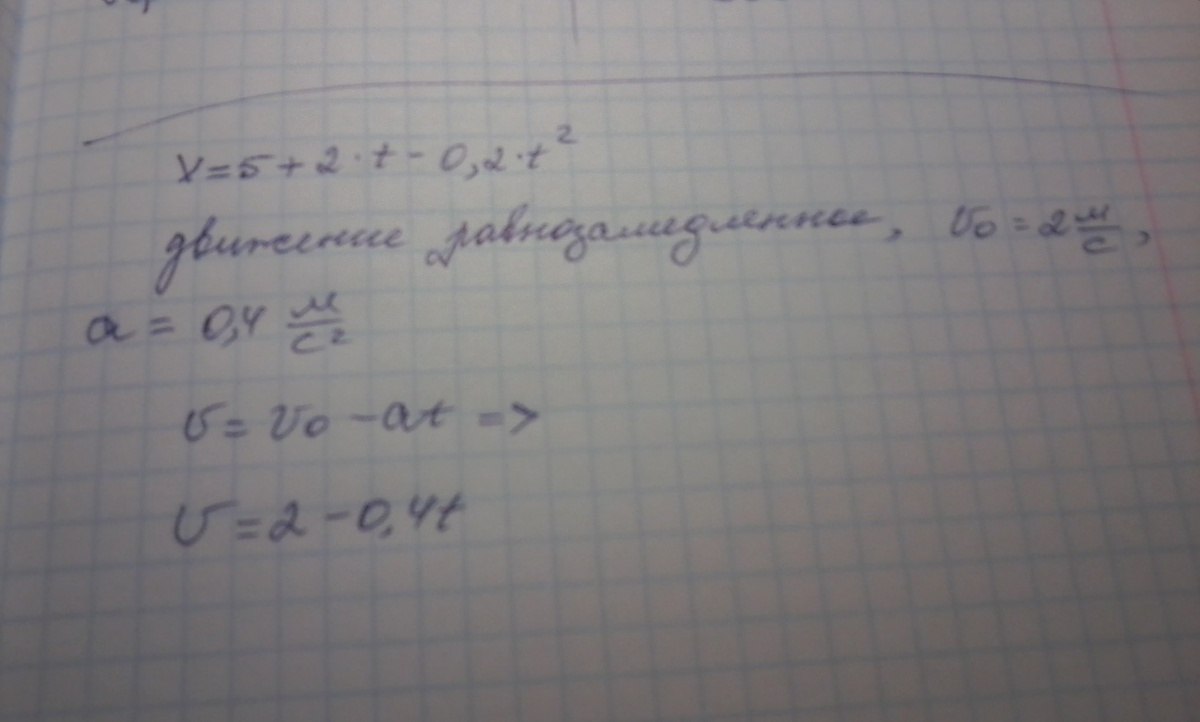 Значит, x0 = 5; v0 = 2; a = -0,4