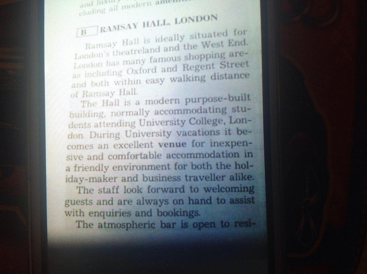 Рамсей зал идеально подходит для Лондона театрального и Уэст-Энда. Лондон имеет много известных торговых районов, включая Оксфорд и Риджент-стрит и как в нескольких минутах ходьбы от Рамсей зале Зал является специально построенный здание Современное Обычно размещения студентов, посещающих Университетский колледж Лондона При университетских каникул становится местом для недорогого и комфортного размещения в дружественной обстановке, как для отдыхающих и деловых путешественников, так. Полный английский и континентальный завтрак подаются в большой просторной столовой имеется широкий выбор вкусных ужинах доступных Размещение состоит из 400 комнат Все номера полностью коврами и имеют мыть-ручные бассейны и центральное отопление На каждом этаже есть туалеты ванне и душевые, а нет средства в номере цветной телевизор салон самообслуживания гость информационная служба и телефоны на каждом этаже есть