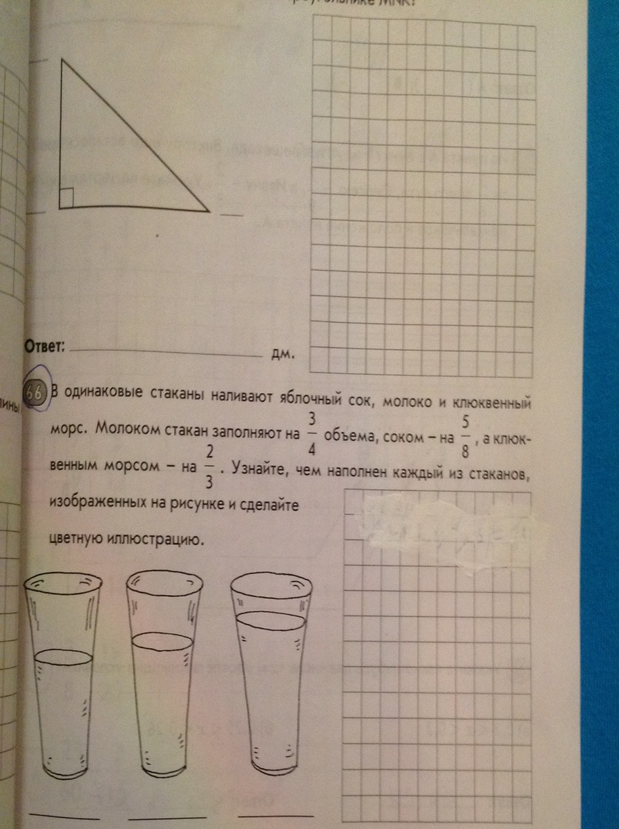 Т.к. стаканы находятся в порядке возрастания количества воды в стакане , то первый стакан с соком, второй- с клюквенным морсом, а третий - с молоком
