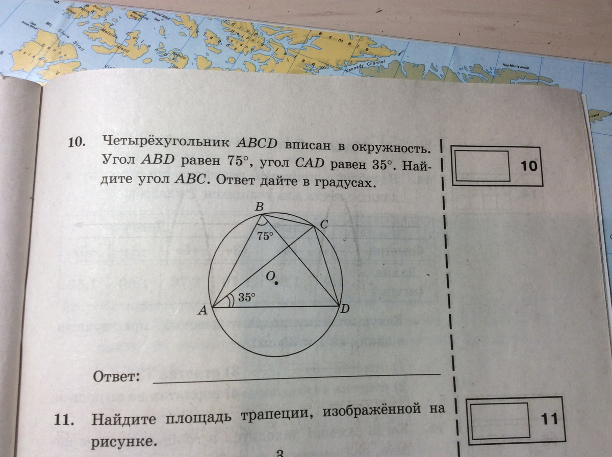 Так как угол СВD опирается на ту же дугу, что и угол САD, то он будет равен 35 градусам. А искомый угол АВС будет равен 35+75=110 градусов.