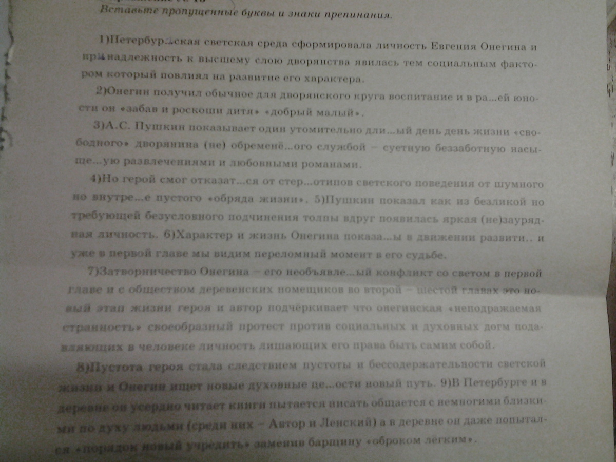 1) Петербургская светская среда сформировала личность Евгения Онегина и принадлежность к высшему слою дворянства, явилась тем социальным фактором, который повлиял на развитие его хар-ра.