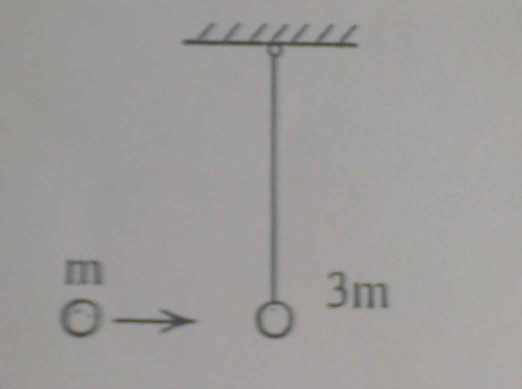 На шарик массы 3m, подвешенный на невесомой нерастяжимой нити длины L, налетает и прилипает к нему пластилиновый шарик массой m, двигавшийся до удара по горизонтали со скоростью V0. Определите натяжение нити сразу после удара.