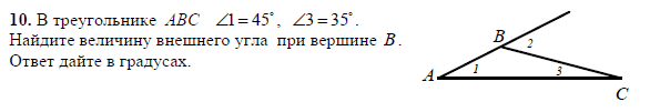 2)Внешний угол равен сумме 2 углов несмежных с ним⇒равен <A+<C=45+35=80