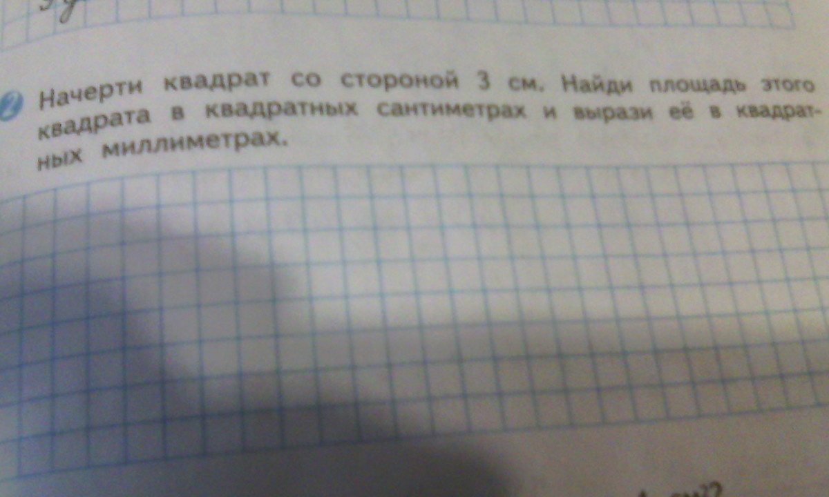 У квадрата все стороны равны. S=3*3=9см в квадрате, 9см= 90мм.