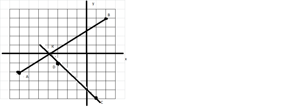 Отрезок АВ и прямая CD пересекаются в точке К (-4;0)