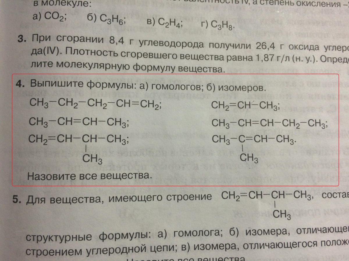 тут же задание, типо по столбикам : 1 столбик - гомологи