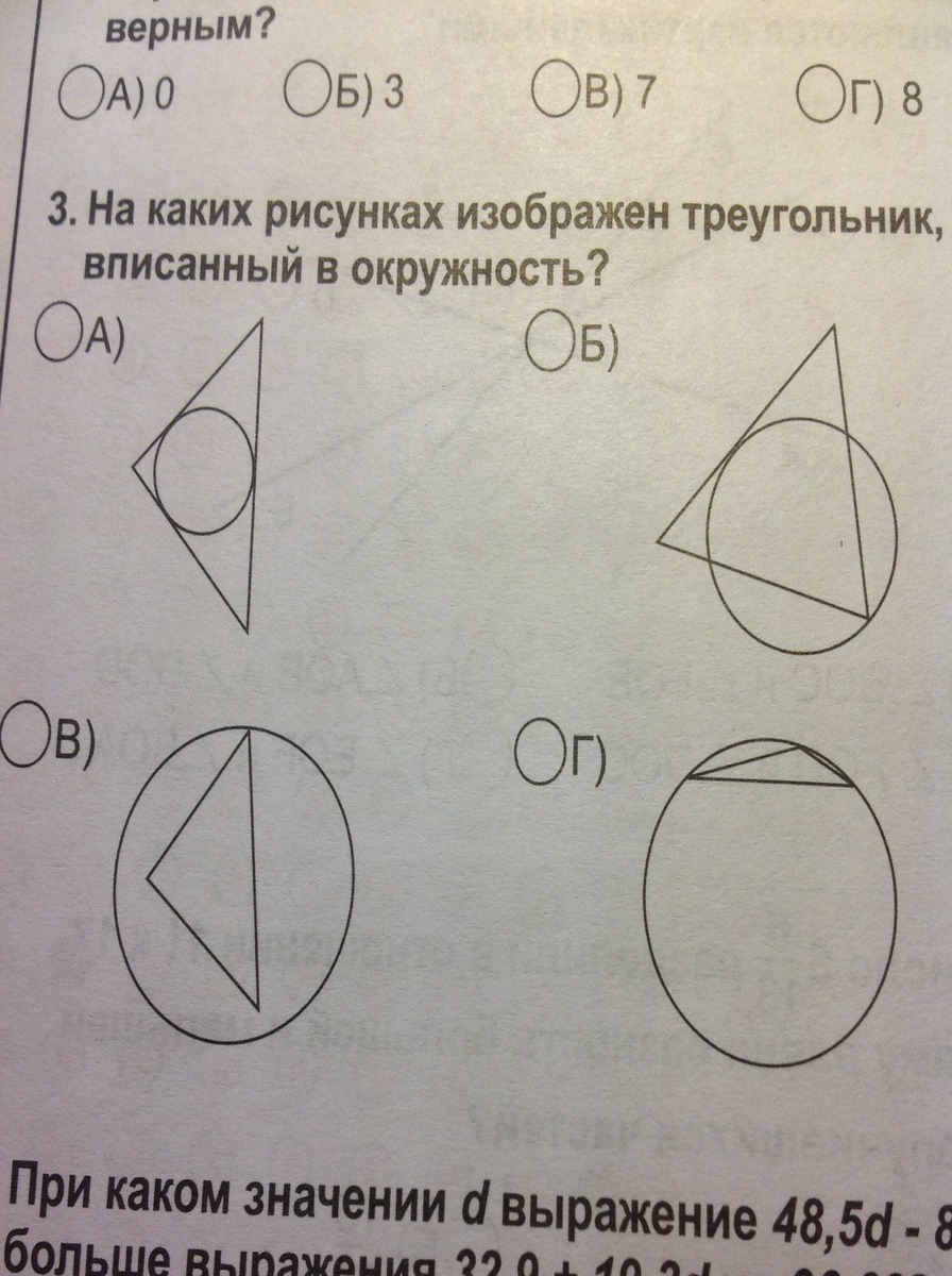 Скорее всего это ответ Г, потому что все вершины треугольника опираются на окружность.