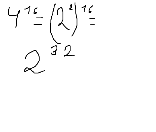 4^16 = (2*2)^16 = 2^16*2^16=2^32