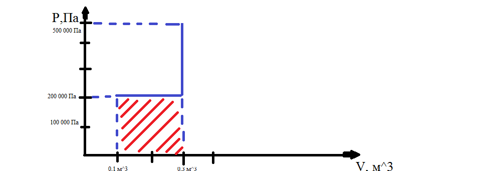 кислород массой 200гр занимает объем 100 литров и находится под давлением р1=200кпа. при нагревании газ расширяется при постоянном давлении до объма 300литров, а затем его давление возрасло до р3=500кпа при неизменном объеме. найти изменение внутренней энергии газа, совершонную работу и теплоту переданную газу. построить график процесса