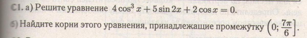 4cos³x+5sin2x+2cosx=0, 4cos³x+5*2 sinxcosx+2cosx=0, 4cos³x+10sinxcosx+2cosx=0, 2cosx(2cos²x+5sinx+1)=0,