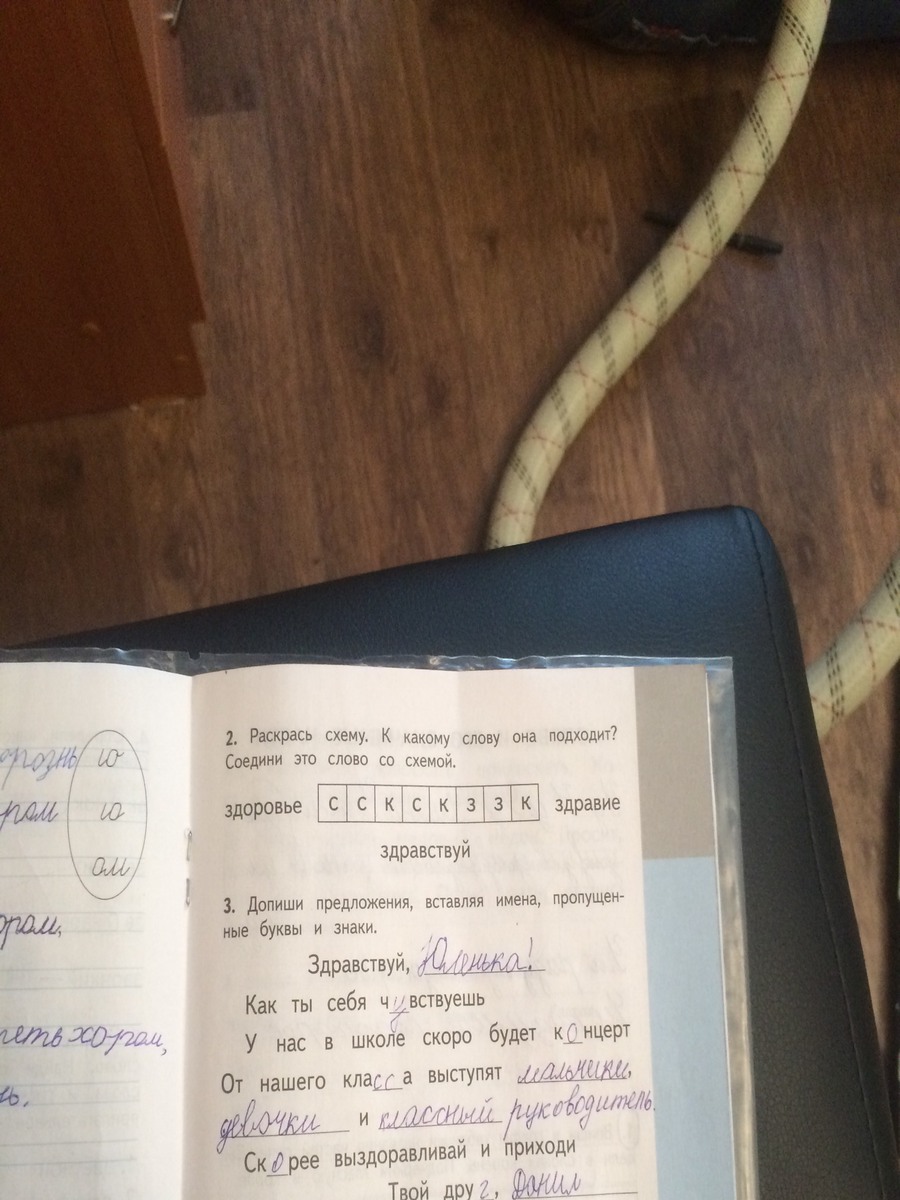 соединить со словом ЗДОРОВЬЕ и раскрасить синим(С - согласные твердые), зеленым (З- согласные мягкие) и красным (К-гласные)