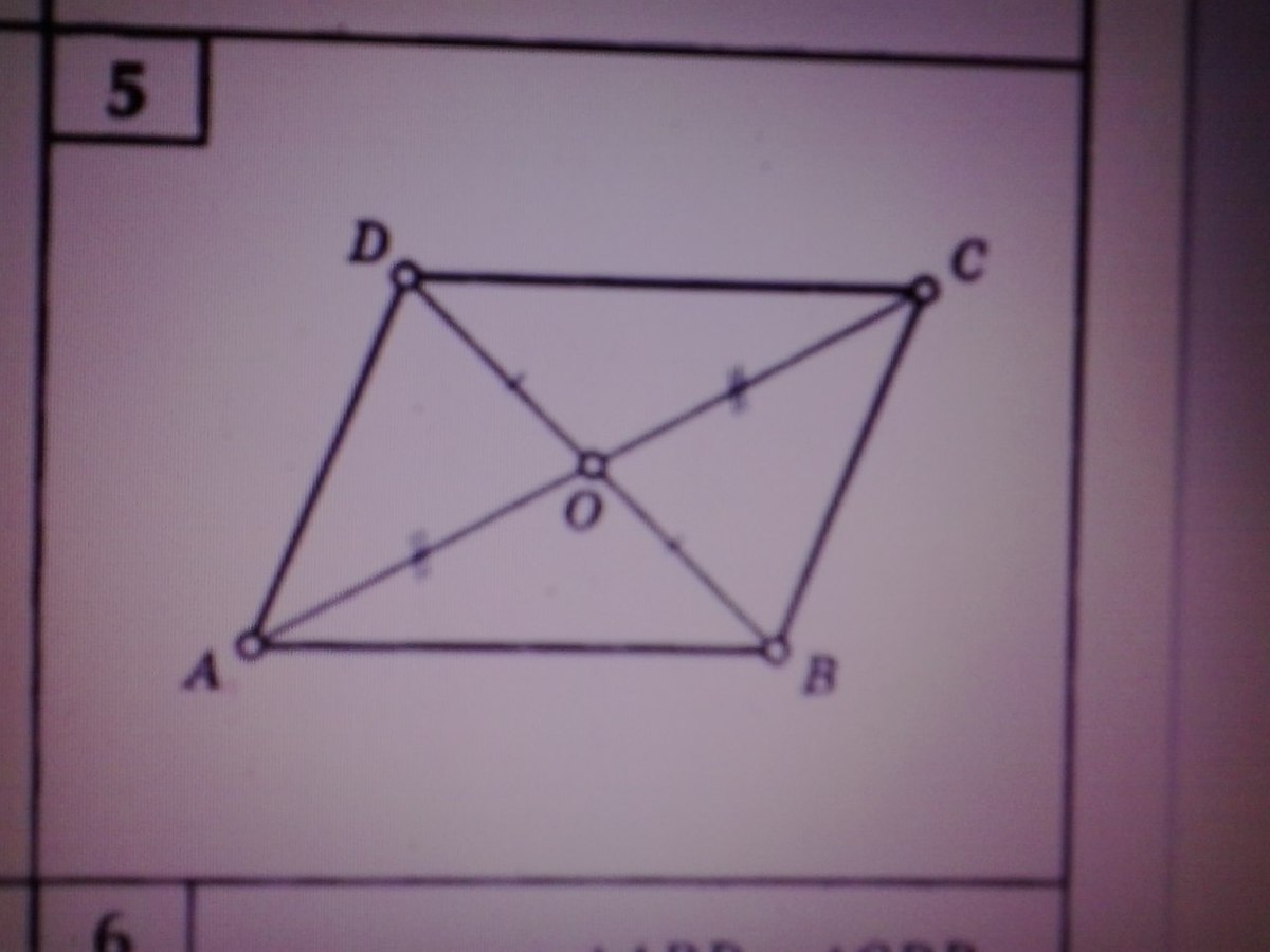 Диагонали четырехугольника АВСD точкой пересечения О делятся пополам.