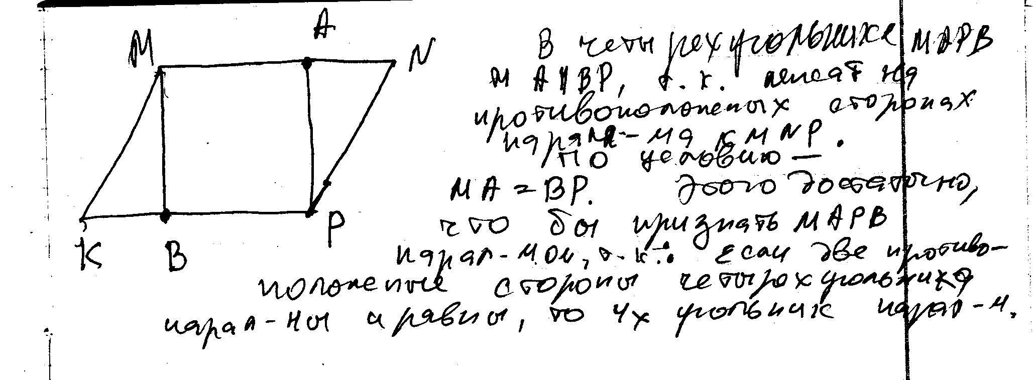 На сторонах MN - PK параллелограмма KMNP отложены равные отрезки MA и PB. Докажите, что четырехугольник AMBP - параллелограмм.