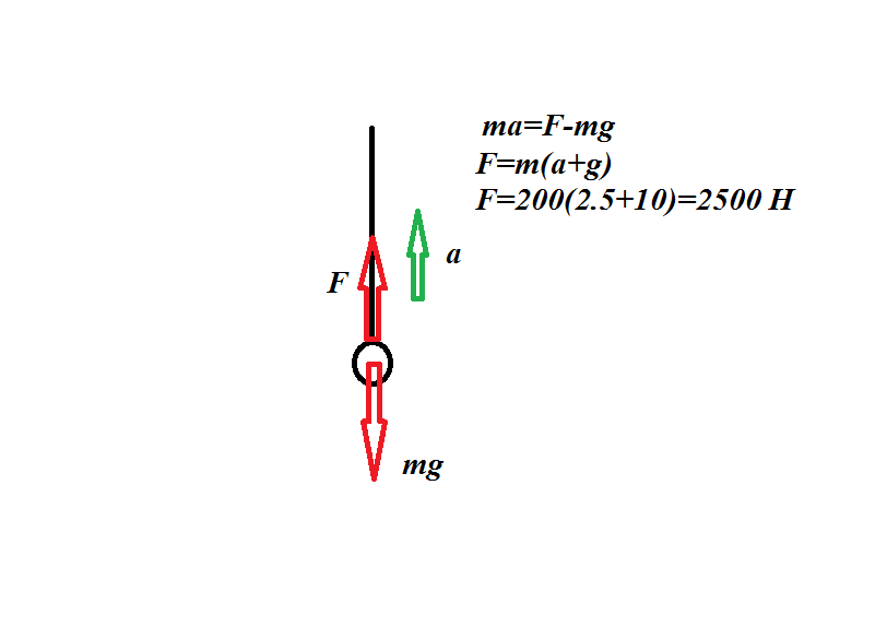какова сила натяжения троса при вертикальном подъеме груза массой 200 кг с ускорением 2, 5м/с, нужен рисунок