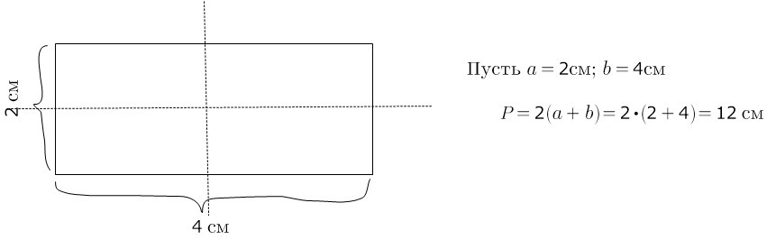 постройте прямоугольник, соседние стороны которого равны 4см и 2см, вычислите его периметр.Проведите оси симметрии построенного прямоугольника