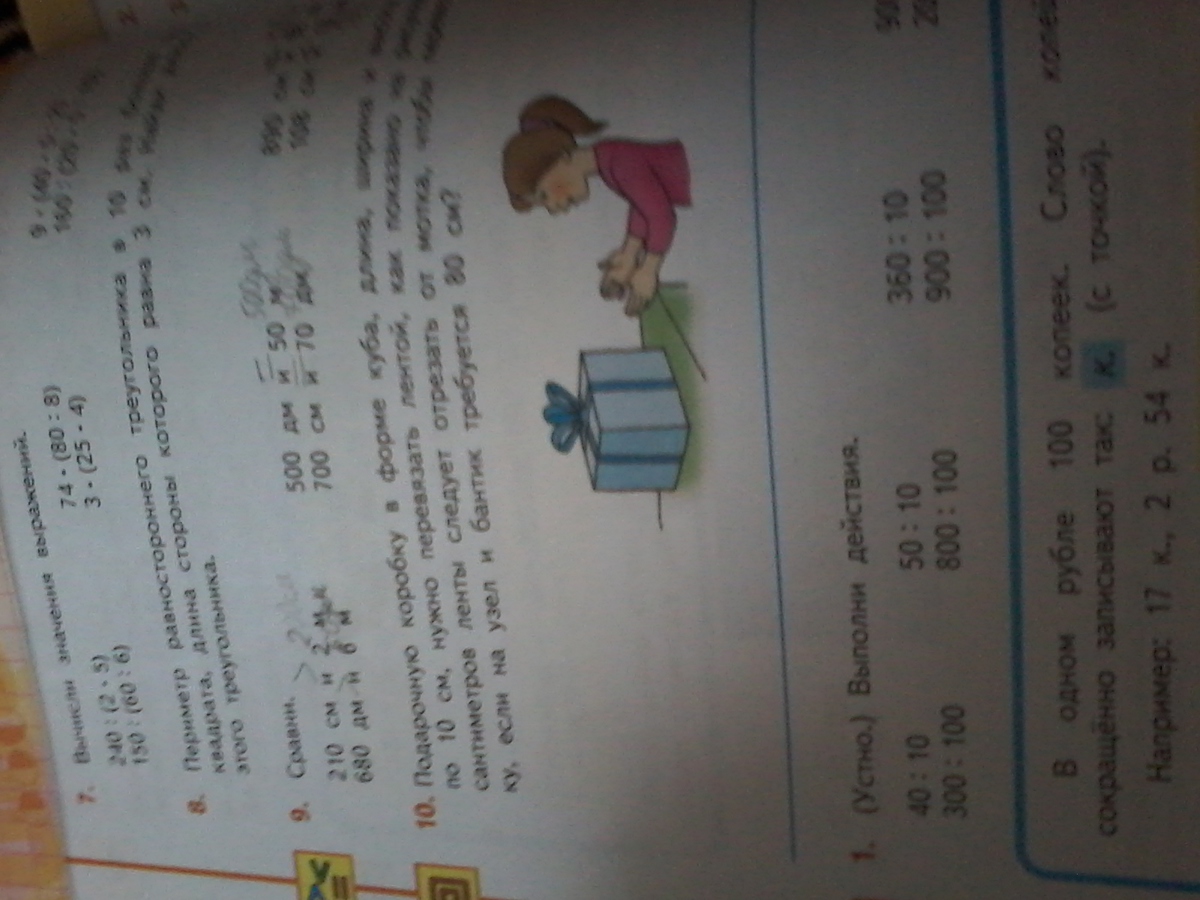 подарочную коробку в форме куба, длина, ширина высота которого по 10 см, нужно перевязать лентой, как показано на рисунке.сколько сантиметров ленты следует отрезать от мотка, чтобы перевязать коробку, если на узел и бантик требуется 80см