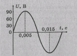 Через четверть периода, глядя на график, видно, что напряжение равно 0