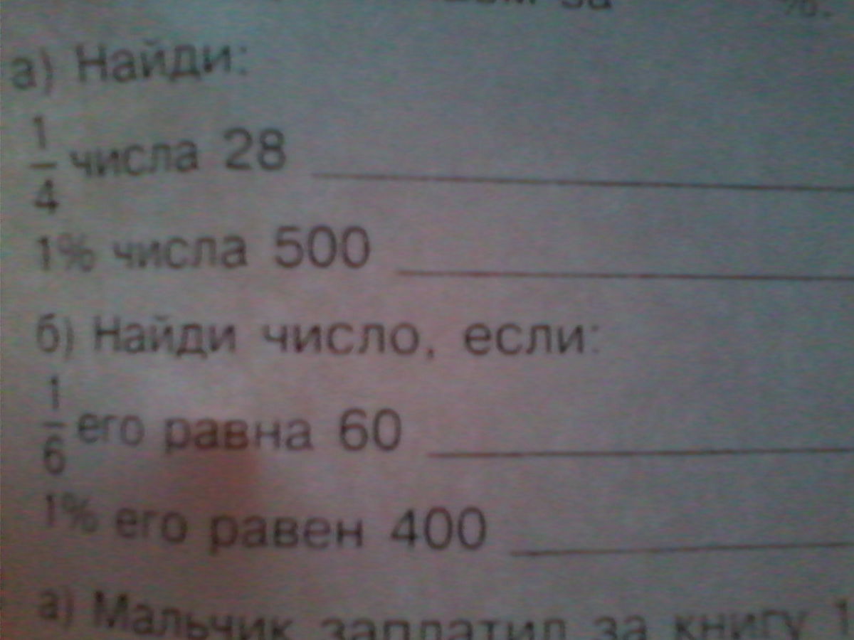 1/4 числа 28 - умножаем 1/4 на 28, получаем 7.