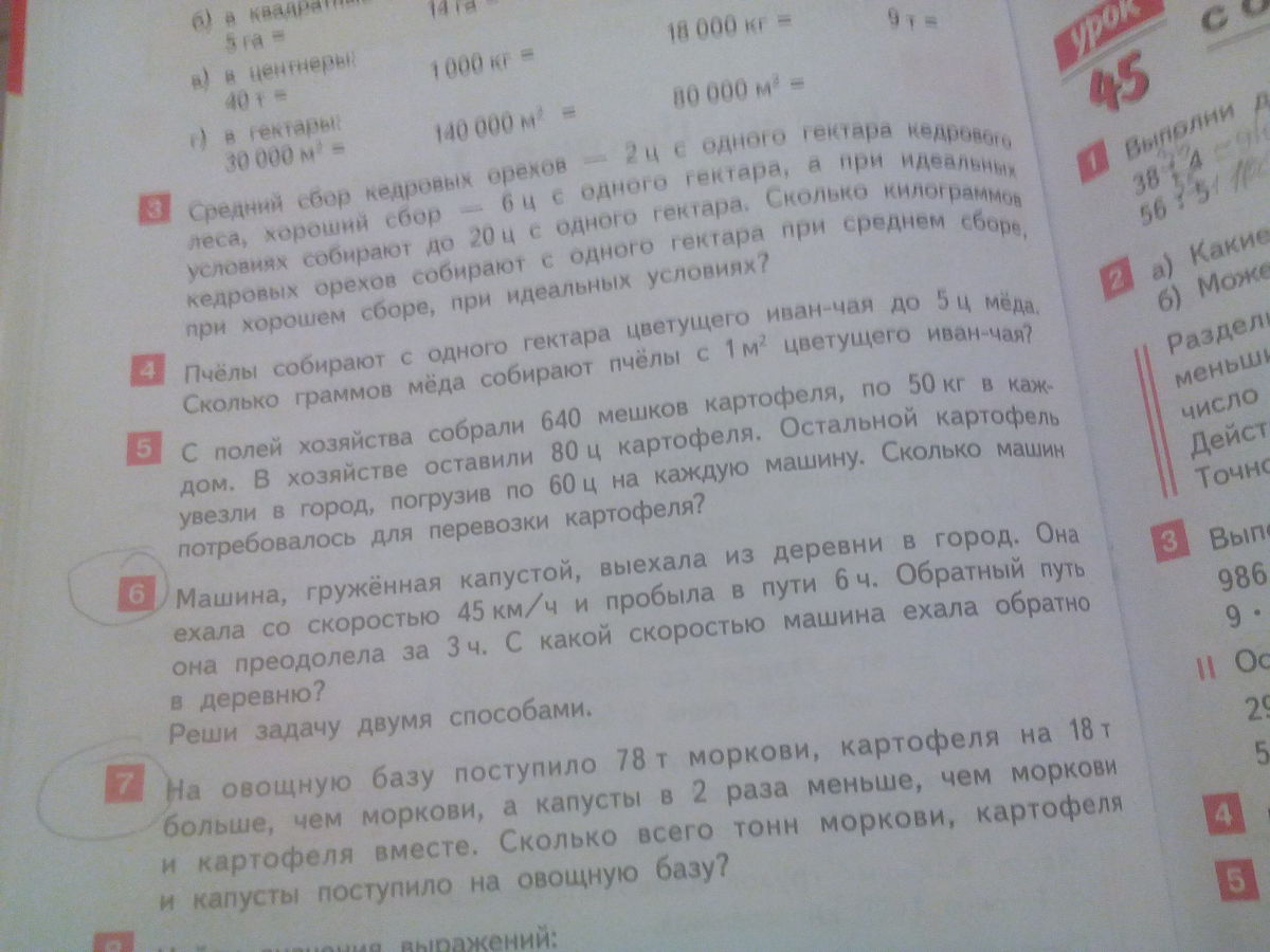 1 ц=100 кг, 80 ц=80*100=8000 кг, 60 ц=60*100=6000 кг 1)50*640=32000 кг картофеля всего собрали 2)32000-8000=24000 кг картофеля увезли в город 3)24000:6000=4 машины Ответ:4 машины потребовалось для перевозки картофеля.