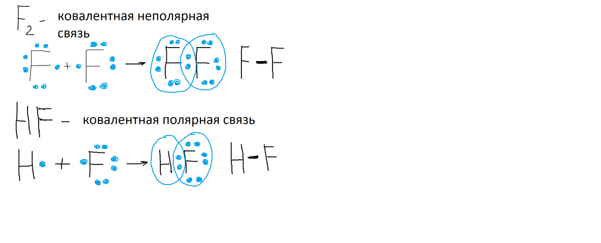 составьте схемы образования химической связи между атомами в молекулах фтора F2,фтороводорода HF