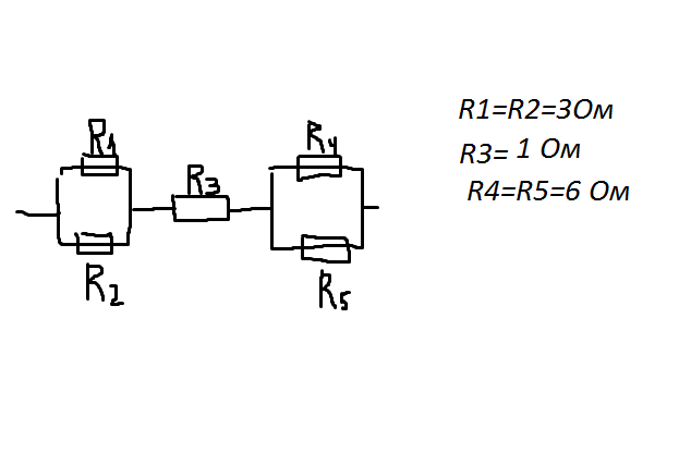 Помогите по физике пожалуйста.Последовательное и параллельное соединение проводников. (Задача на картинке,я художник от Бога :D) Нужно расчитать сопротивление на участке эл.цепи.