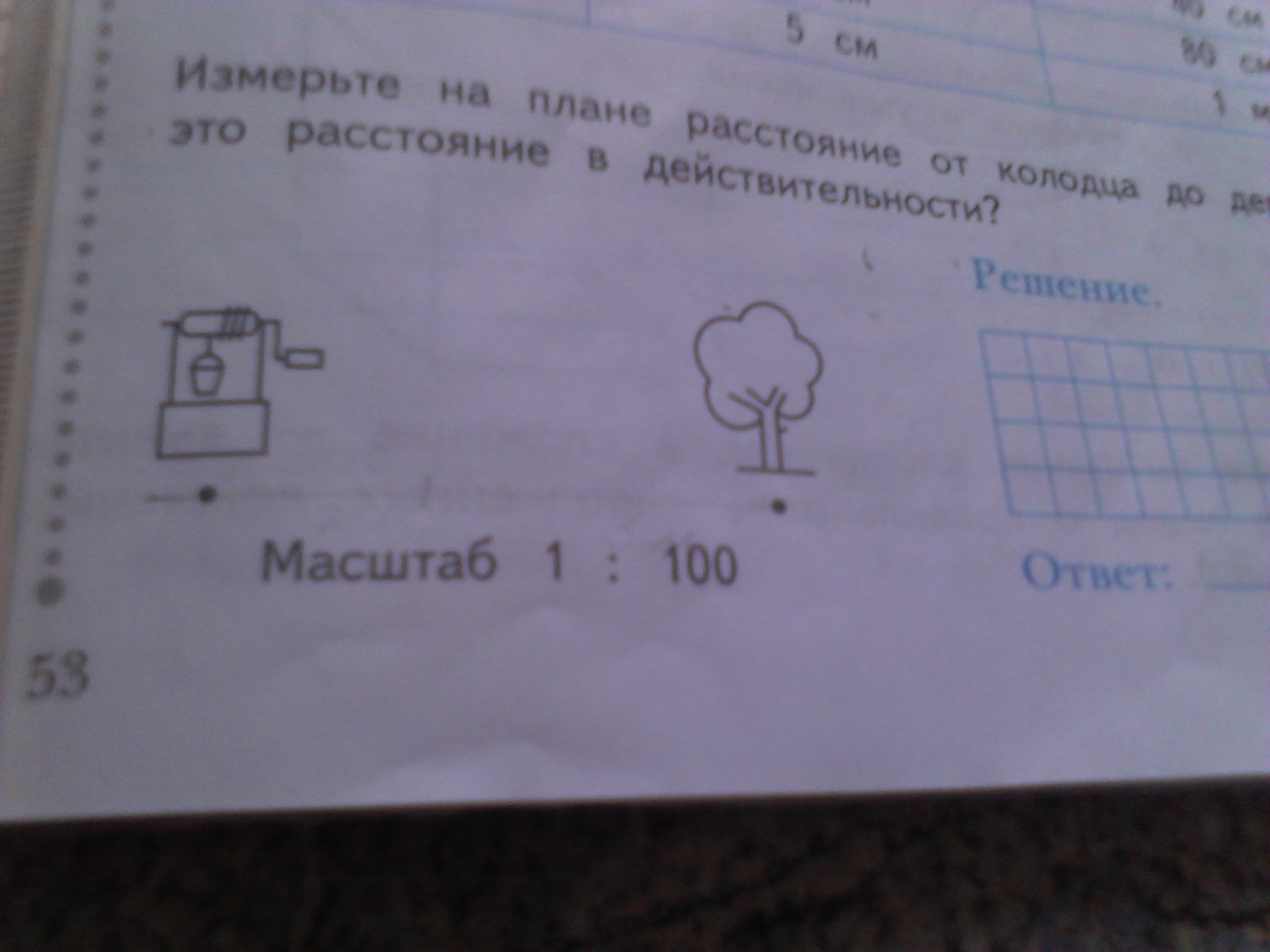 Измерьте на плане расстояние от колодца до дерева.Какое это расстояние в действительности?