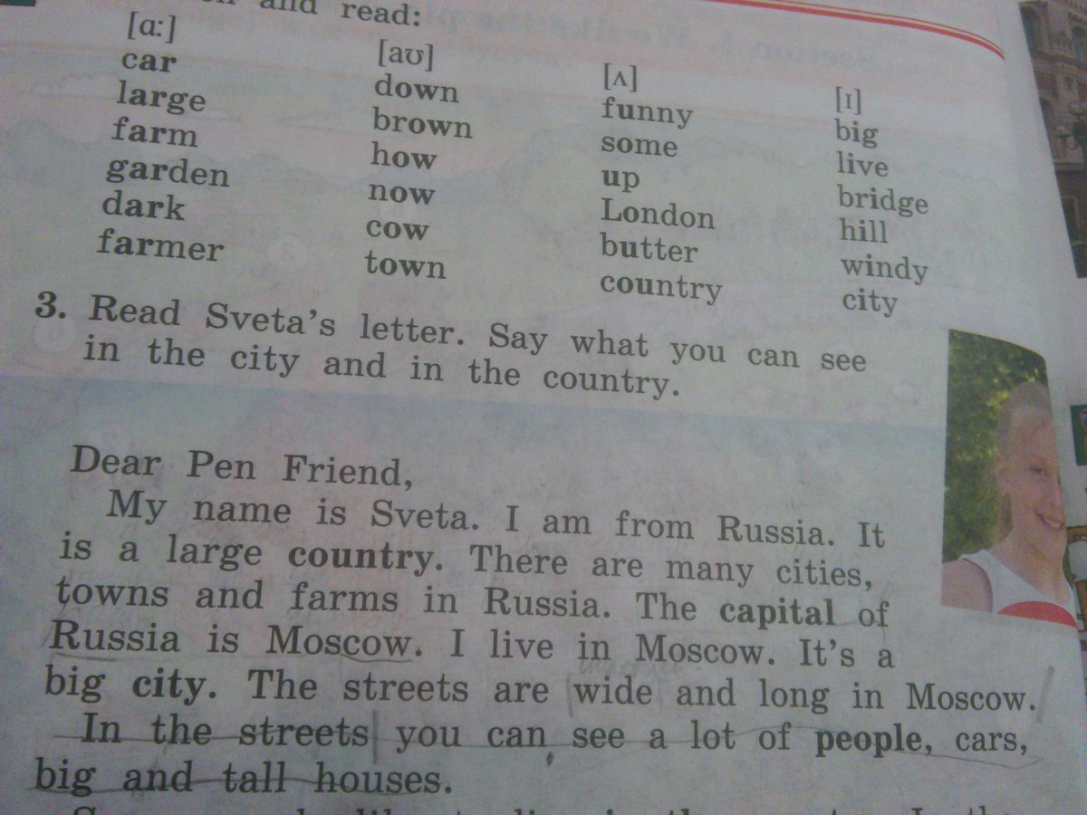 Задание: Рид Светас леттер. Сэй вот ю кэн си ин зэ сити энд ин зэ кантри.