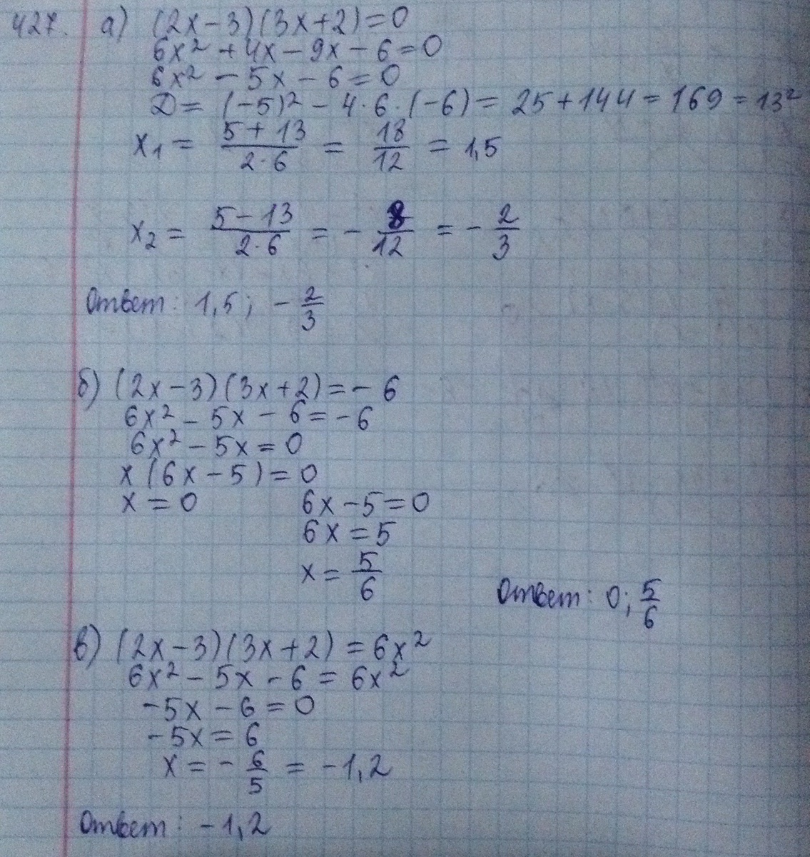 Уравнения номер 427 а,б,в