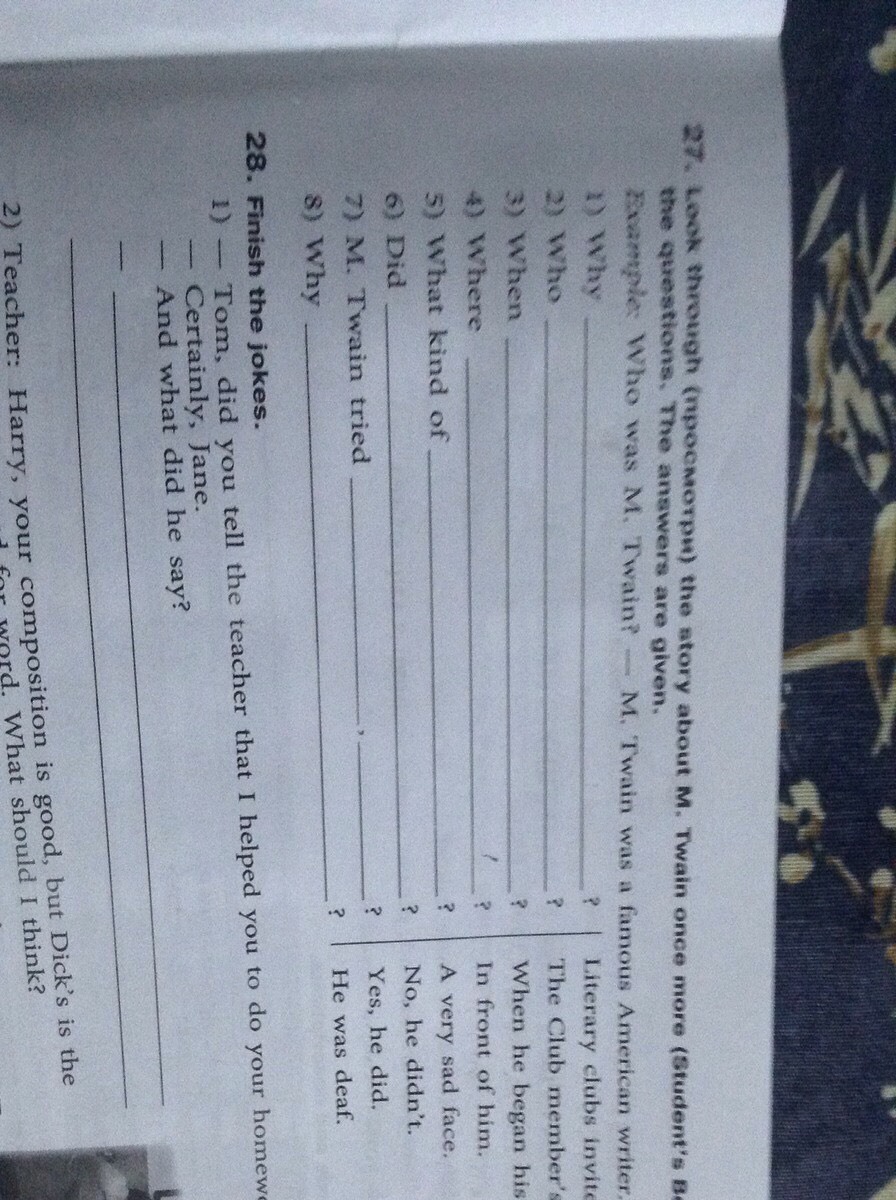 Чтобы сделать остальные задания, нужен текст про Марка Твена. Текст про парки Лондона у меня был.