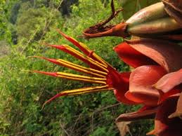 При первом взгляде на цветущее дерево становится не по себе: кроваво-красные цветки имеют необычайное сходство с кистями человеческих рук: из кожистых чашечек тянутся растопыренные «пальцы», даже с «ногтями», и после двух недель цветения начинают увядать. В чашечках накапливается сок, вкус которого напоминает жареный хлеб с водой.