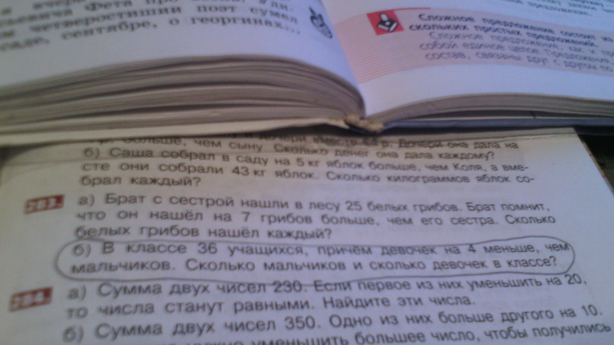 В классе 36 учащихся, причём девочек на 4 меньше, чем мальчиков. Сколько мальчиков и сколько девочек в классе?
