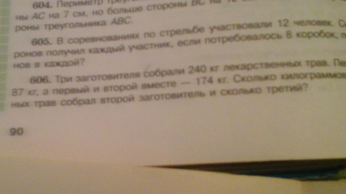 три заготовителя собрали 240 лекарственых трав. Первый собрался кг и второй вместе 174 сколько килограмм лекарственых трав собрал второй заготовитель? номер606