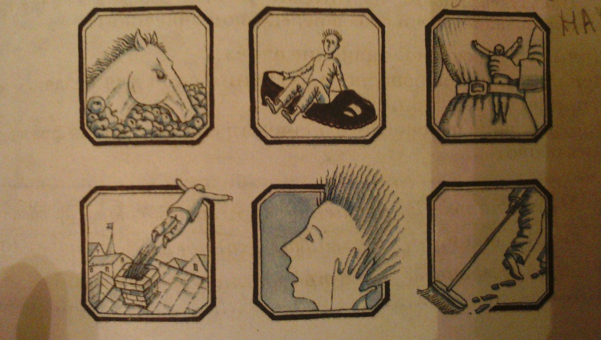 конь в яблоках,сесть в калошу,заткнуть за пазуху,вылетить в трубу,волосы дыбом