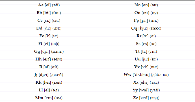 Jj [ʤei] (джей) Ww ['dʌblju:] (дáбл ю:)