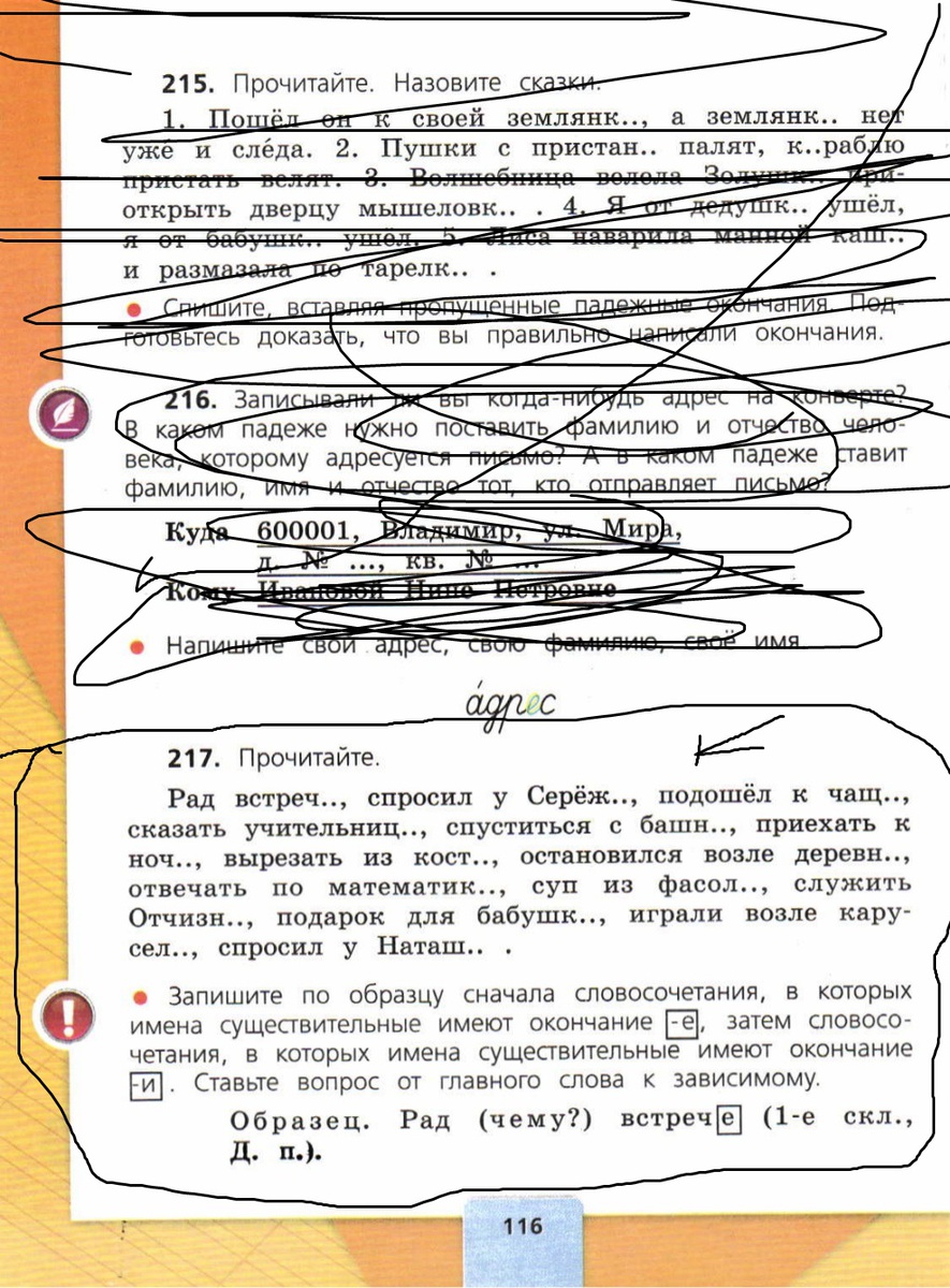 Рад встречИ,спросил у СерёжИ,подошёл к чащЕ,сказать учительницЕ,спуститься с башнИ,приехать к ночИ,вырезать из костИ,остановился возле деревнИ,отвечать по математикЕ,суп из фасолИ,служить ОтчизнЕ,подарок для бабушкИ,играли возле каруселИ,спросил у НаташИ )