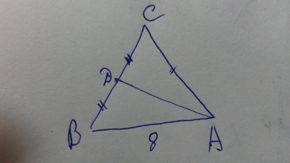 в треугольнике АВС:АС=ВС, АD - медиана.Разность периметров треугольника АСD и ADB равна 2 м, АВ=8м.Найдите АС.