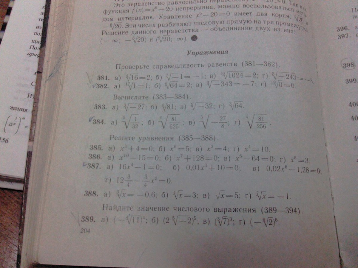 383. а)![sqrt[3]{ -27 } = sqrt[3]{(-3)^{3} } =-3 sqrt[3]{ -27 } = sqrt[3]{(-3)^{3} } =-3](https://tex.z-dn.net/?f=+sqrt%5B3%5D%7B+-27+%7D++%3D++sqrt%5B3%5D%7B%28-3%29%5E%7B3%7D+%7D+%3D-3)
