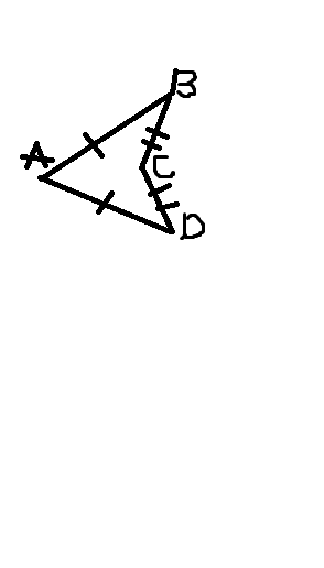 Док-во:АВ=ВD(по усл.),СD=СВ(по усл.)=>угол В= углу D.