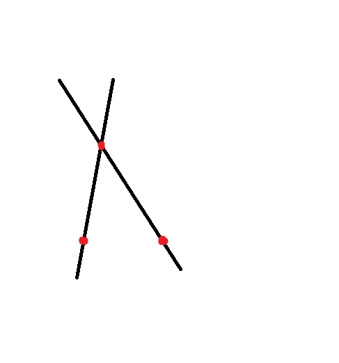 Миша начертил 3 прямые,на каждой из них он отметил по 2 точки,всего было отмечено 3 точки,как он это сделал?