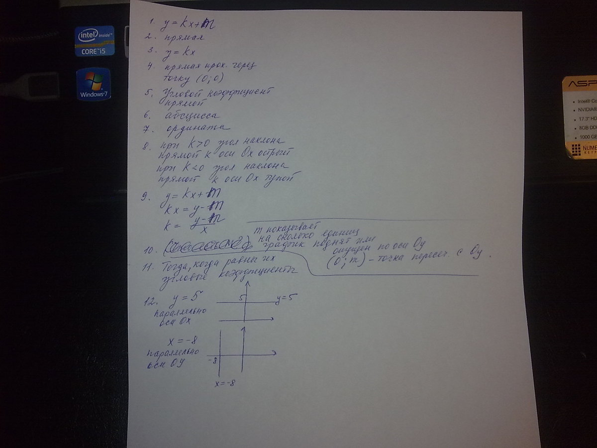 12.как выглядит график У=5? Х=-8?