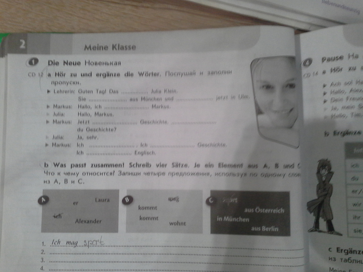 Sie lieght (сомневаюсь) aus Munchen .... wohnt (тоже сомневаюсь)/// in Ulm.