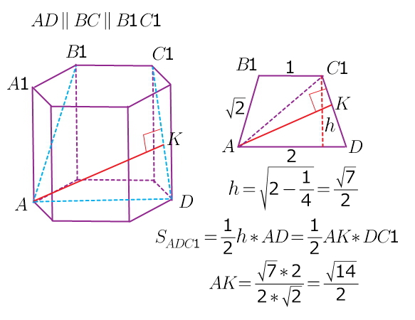а) построить сечение призмы плоскостью, проходящей через точки A, C1, D.
