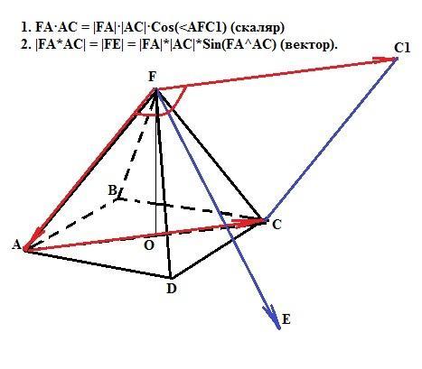|FA*AC| = |FA|*|АC1|*Sin(FA^АC1) = 2·2√2·√2/2 = 4 см. (Угол между векторами равен 135°, AC = 2√2).